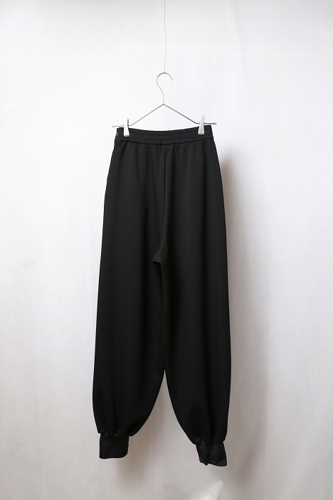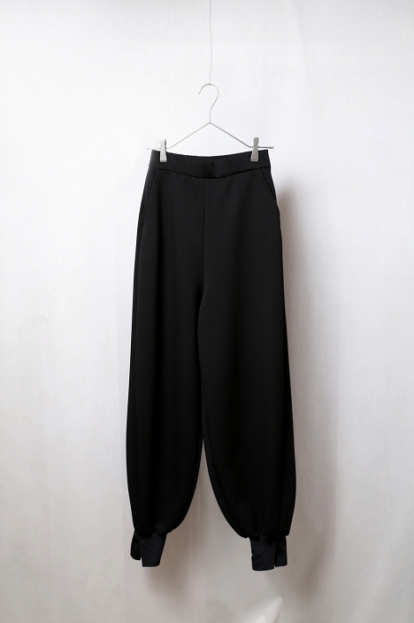 美しいウエスト周りのディテールや、通常のスウェットパンツにあるウエストゴムの抵抗感をなくすため、