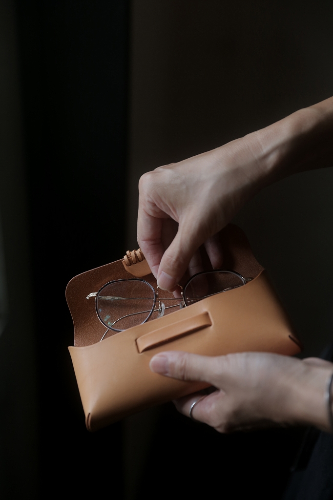 縫いをせず織り込みだけの美しいフォルムの眼鏡ケース。