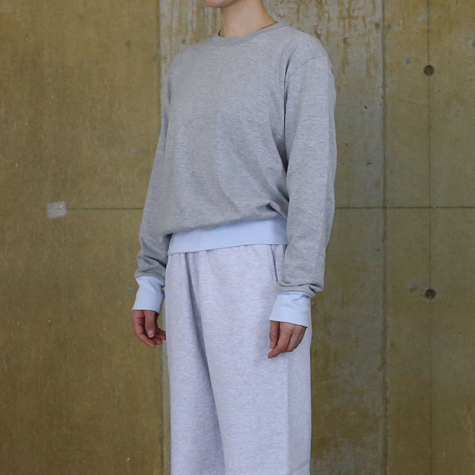 裾をフライスで切り替えリメイクした、スウェットのような雰囲気の長袖Tシャツ。