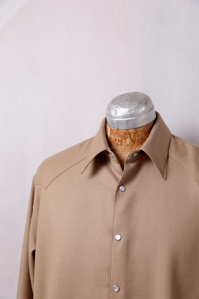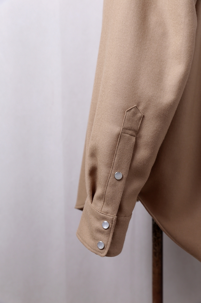 ウェスタンシャツの象徴的なディテールである胸元のヨークや、スナップボタンはそのままに、