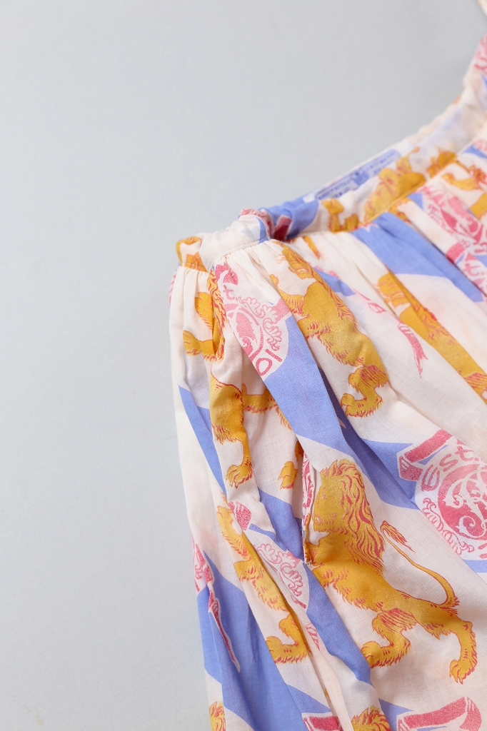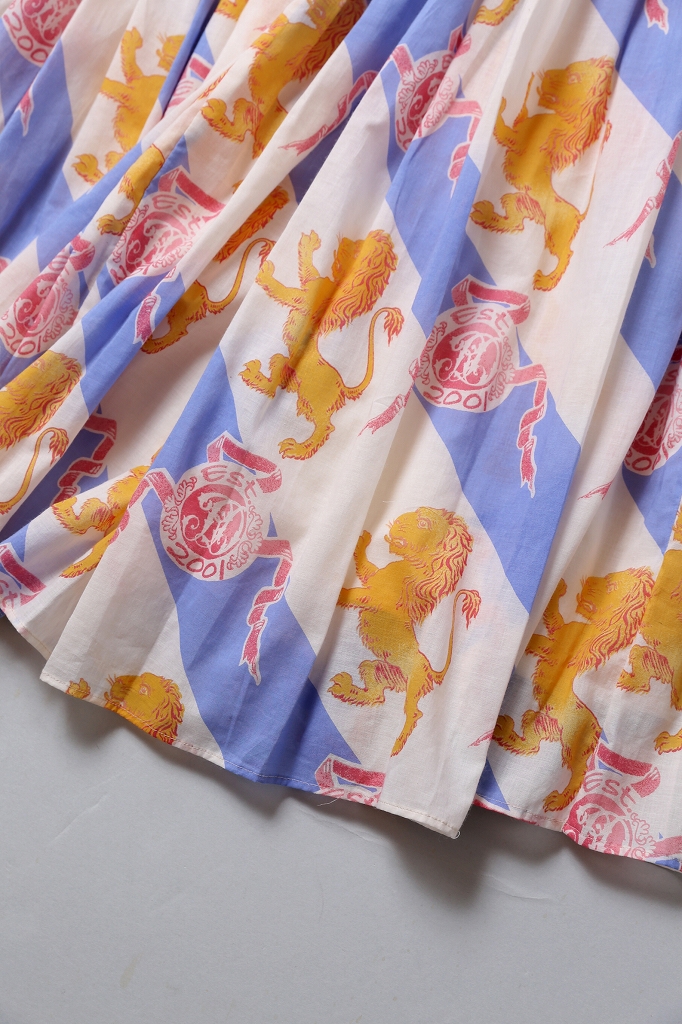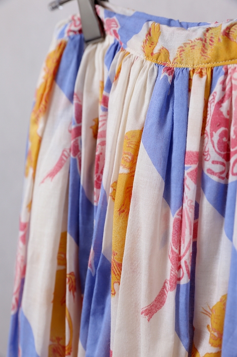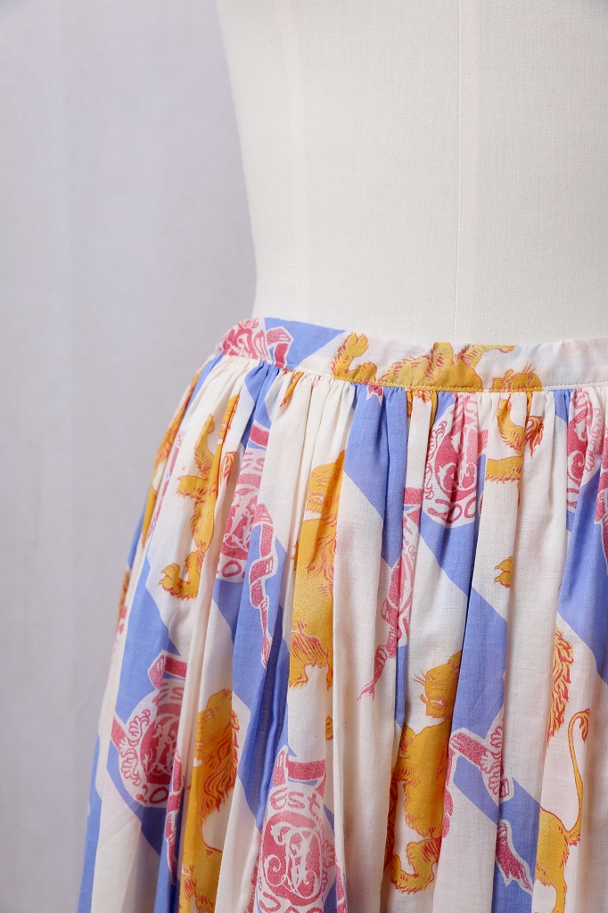 美しいドレープを描くしなやかな生地感と、目を惹くロイヤルライオンプリントのギャザースカート。