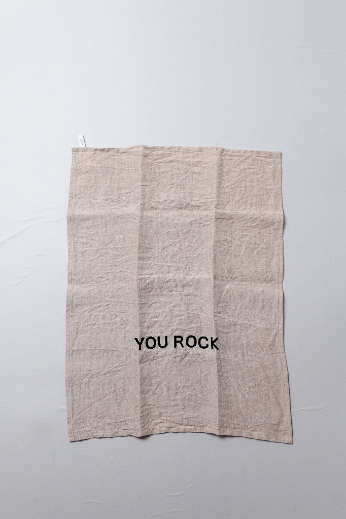 施されたクロスステッチ刺繍は、シーズンごとに変わる遊び心のある言葉です。