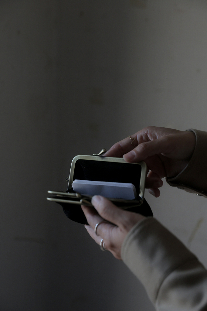 クラシックな真鍮製のがま口は、パカッと大きく開き中身が確認しやすく、