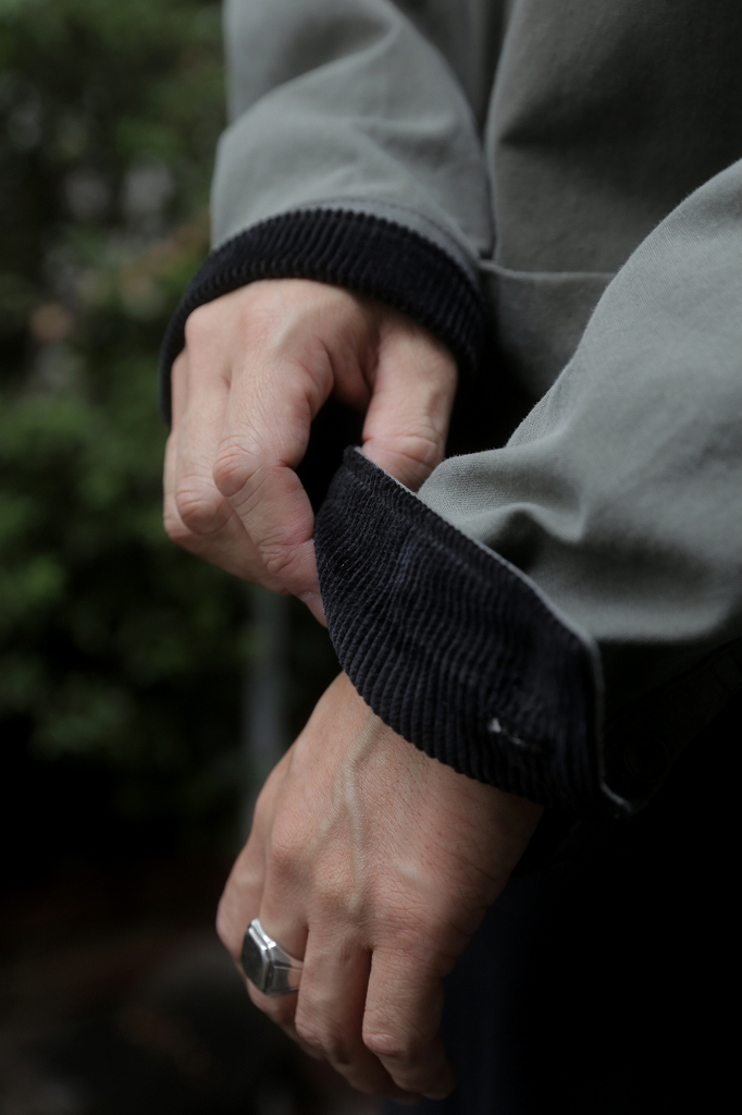 襟裏とカフス裏には温かみのあるコーデュロイ生地を配し、見えない部分にもこだわりが。