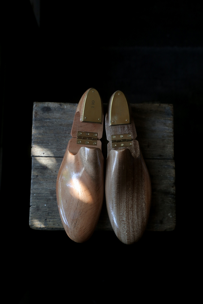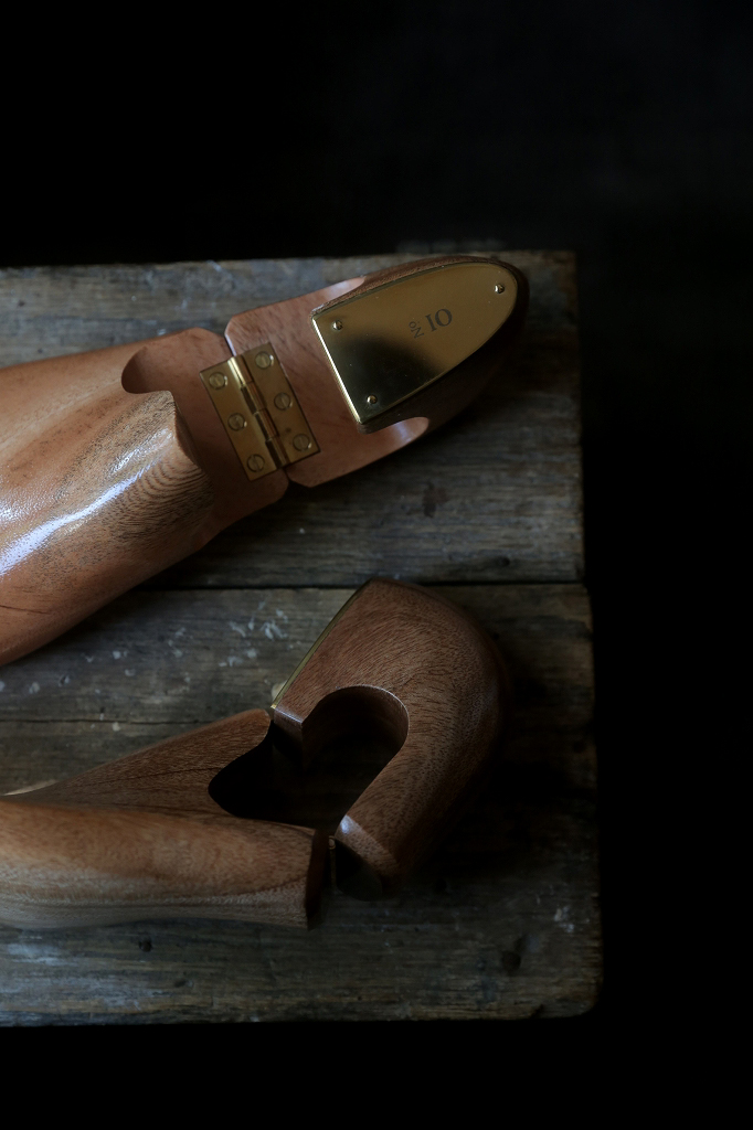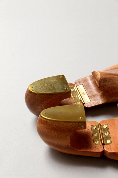 木目が美しく、フォルメの靴のフォルムをしっかりと支えるヒンジ式で制作されています。
