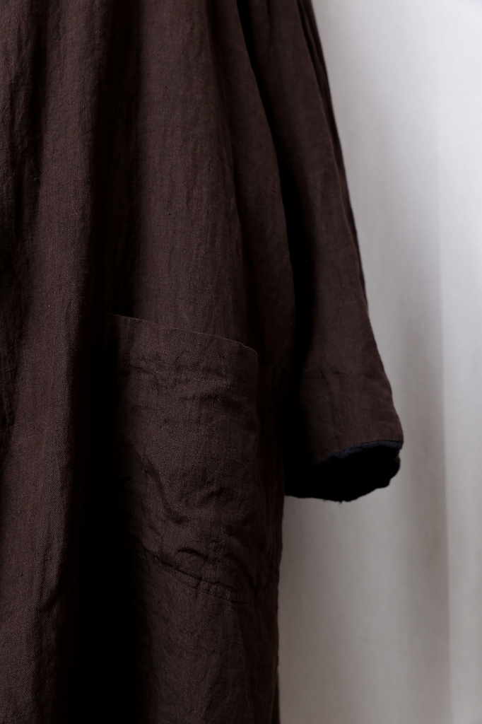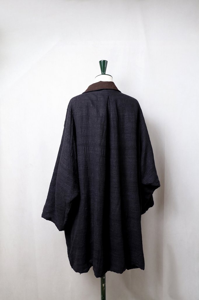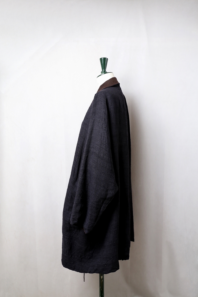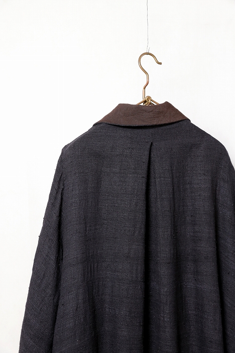 着物のようなゆったりとした身幅のミドル丈で、袖はラグランスリーブのように幅を取り、