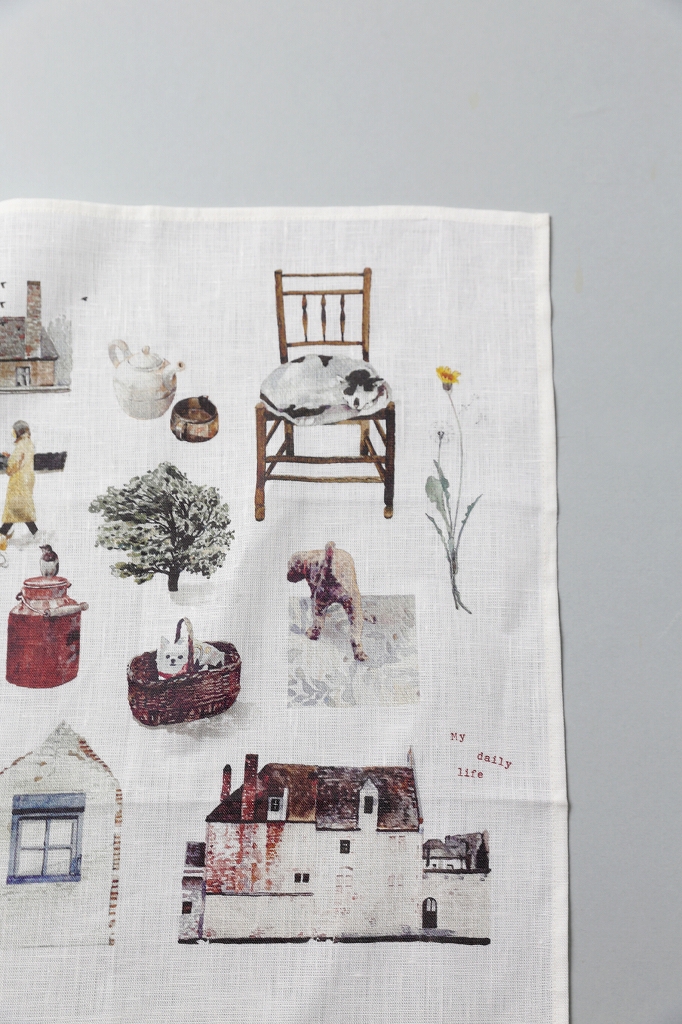 荻原美里さんが描いたイラストをリネン生地にプリントした、