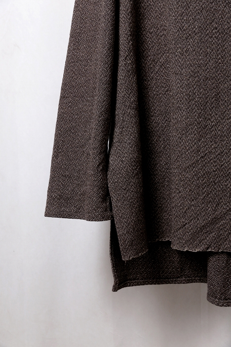首元を美しく見せるデザインと、長めの着丈がすっきりとした印象を纏う一着。