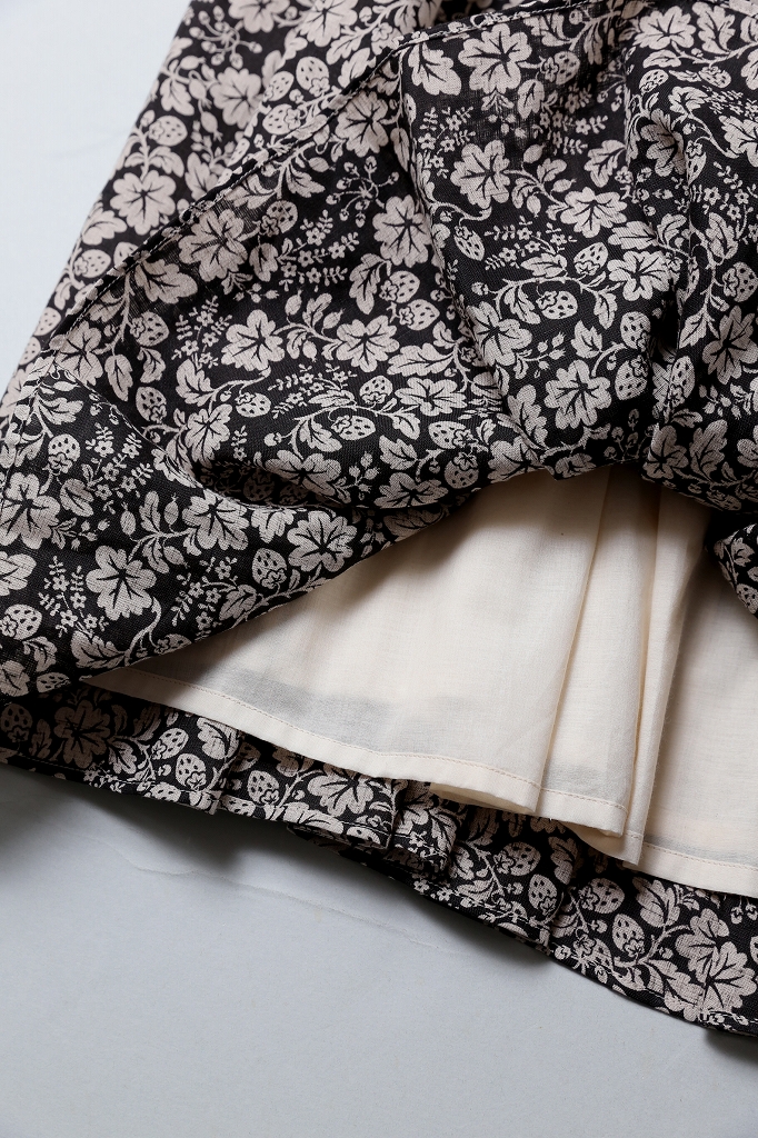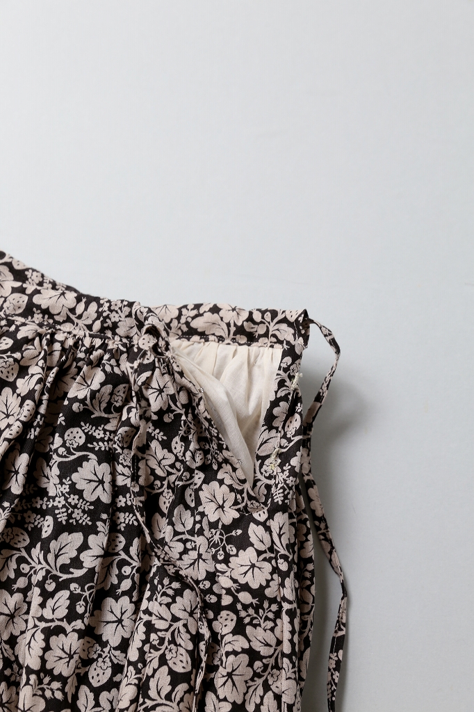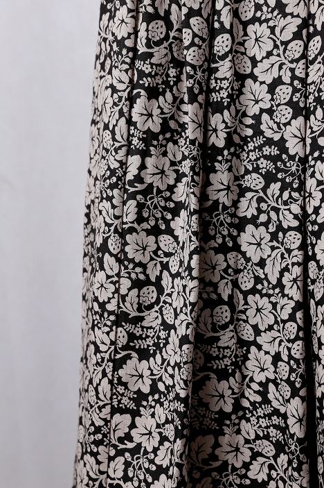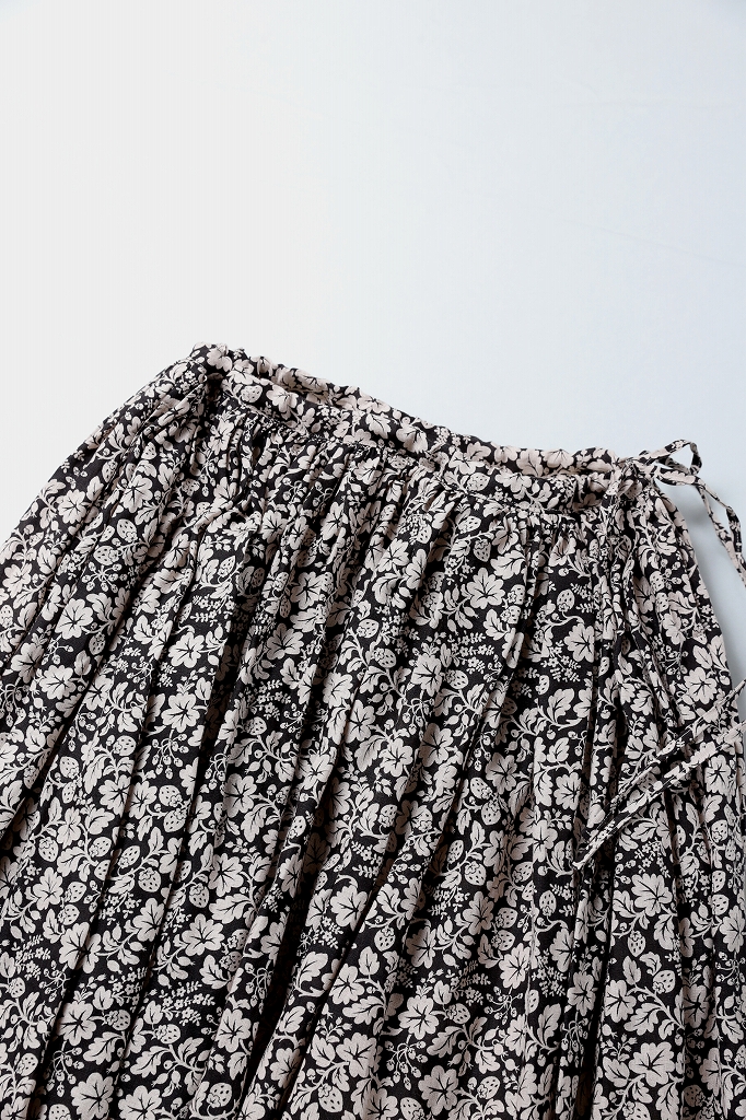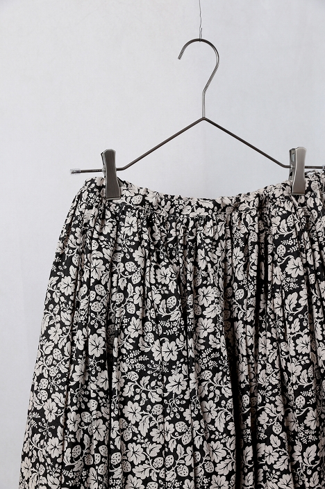目を惹くワイルドベリー柄が主役の、贅沢なギャザースカート。