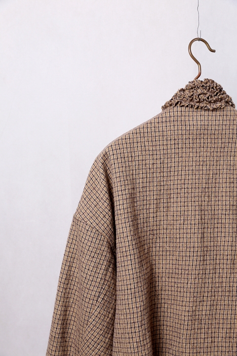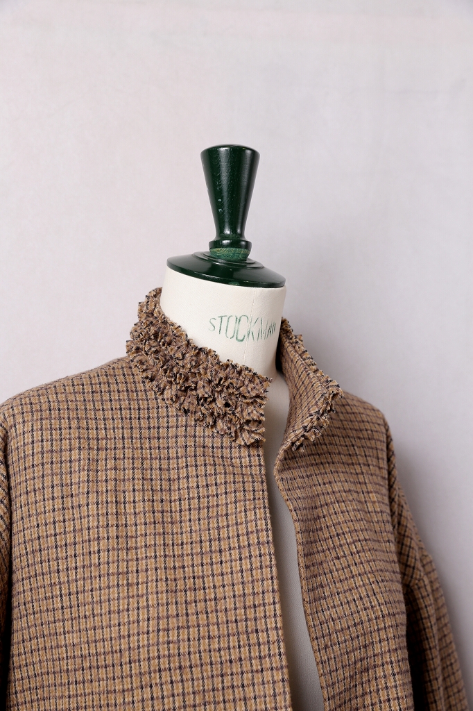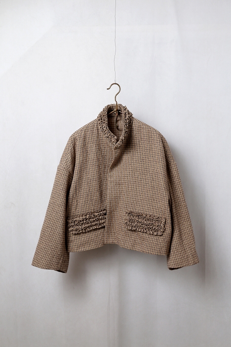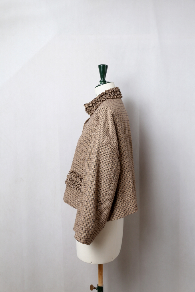襟元から前立て、そしてポケットに幾重にも重ねられた細やかなフリル。
